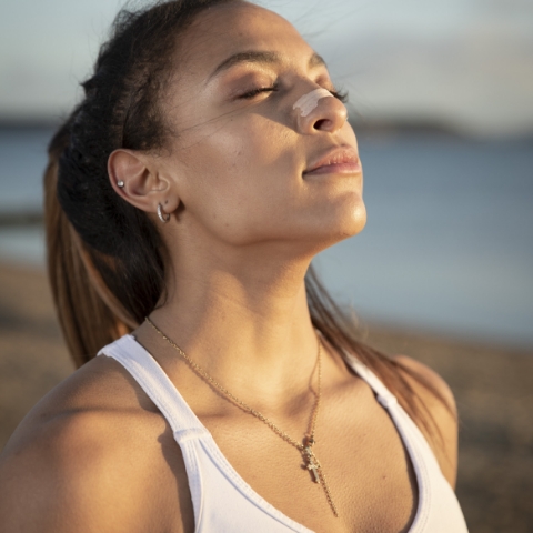 Gently rub the strip to secure it into place on your nose. Take a deep breath. Better breathing begins now.